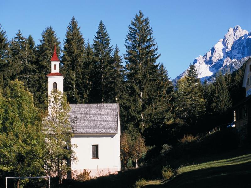 Mit Eintrittsgeldern der Gäste des nahen Heilbades “Bad Maistatt” erbaut, 1732 vollendet, 1735 geweiht; aus verschiedenen Marmorsorten kunstvoll zusammengefügter Hochaltar, geschenk des Fürstbischofs von brixen; das Altarblatt zeigt den Kirchenpatron J...