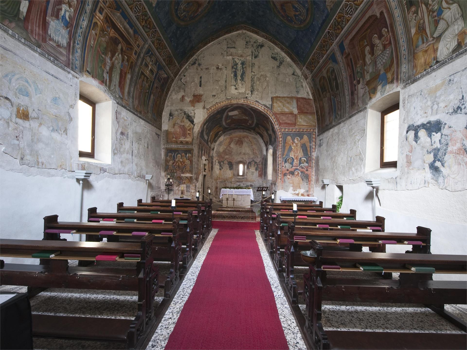 Ein wahres Kleinod, geweiht um 1180. Die einfache Architektur des zentralen Teils wird mit dem hübschen Kirchturm erweitert, mit dreibogigen und zweibogigen Fenstern aus dem frühen 14. Jh. Die wertvollen Fresken im Innenraum sind eine Ausnahmeerscheinung: Junge heimische Künstler aus der Schule des Giotto haben einen neuen Malstil und eine Freskentechnik eingeführt, die von außerordentlichen künstlerischen und interpretativen Fähigkeiten zeugt.