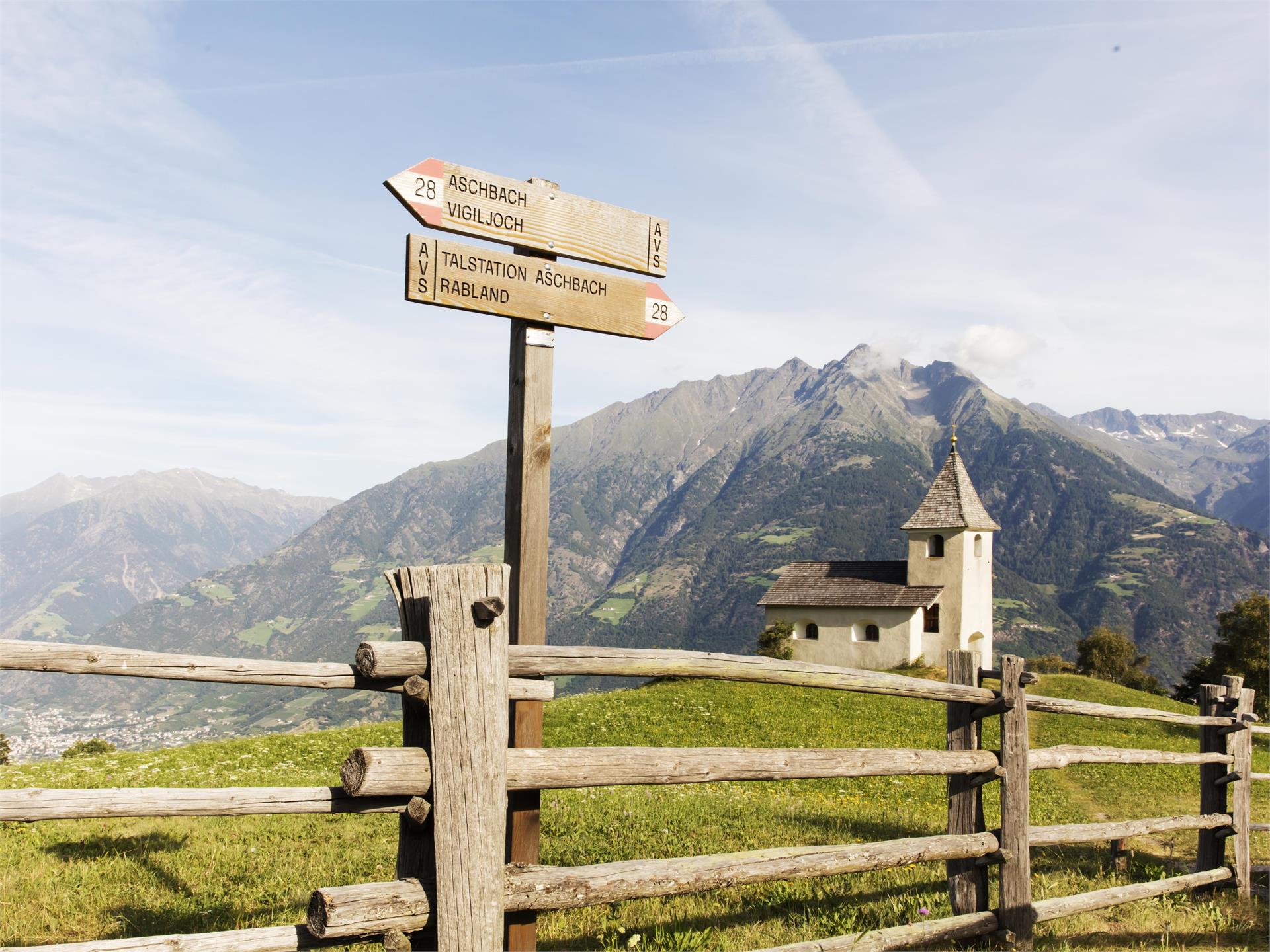 Der Algunder Ortsteil Aschbach liegt getrennt vom restlichen Gemeindegebiet am Vinschgauer Nörderberg und bildet somit eine kleine Enklave zwischen den Gemeinden Partschins und Plaus. Aschbach ist über eine Seilbahn aber auch über eine Straße erreichbar. Bes...