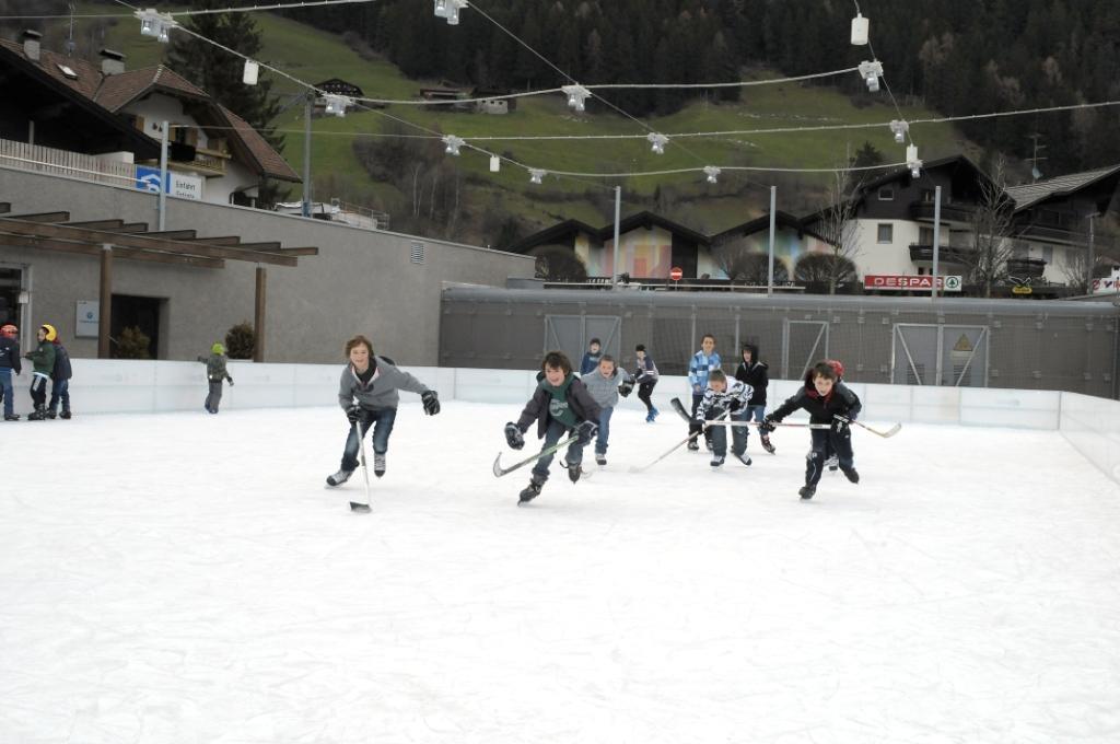 Im Zentrum von Sand in Taufers, direkt neben der IceBar ist der Kunsteislaufplatz mit Schlittschuh- und Eisstockverleih.