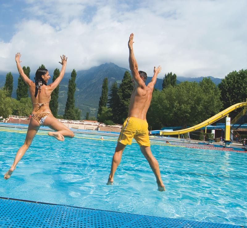 Everyone has a great time at the Lido – and not just inside the actual swimming pools. The diving boards at the large swimming pool and the two slides at the recreational pool guarantee plenty of splashing and sliding.