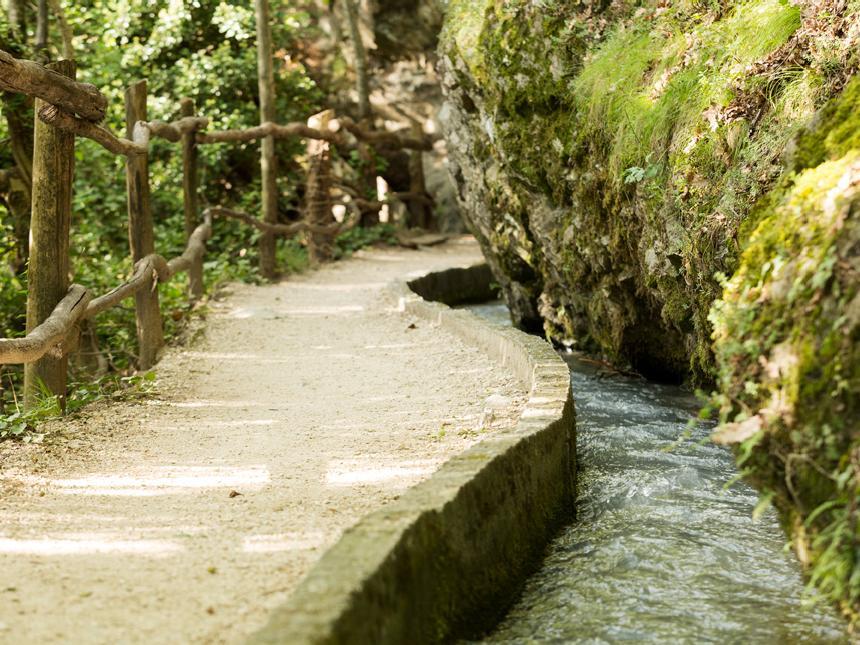 Twelve kilometers long, the Marlinger Waalweg trail is a popular hiking trail which runs along the former irrigation channels, the longest of its kind in South Tyrol. Starting at the Töllbrücke bridge, the 250 year-old path gently ascends through apple orchards and woods to firmer and more level ground. After pausing to admire the medieval Lebenberg Castle, hikers continue slightly downhill along the slope of Marling mountain to the village of Lana.