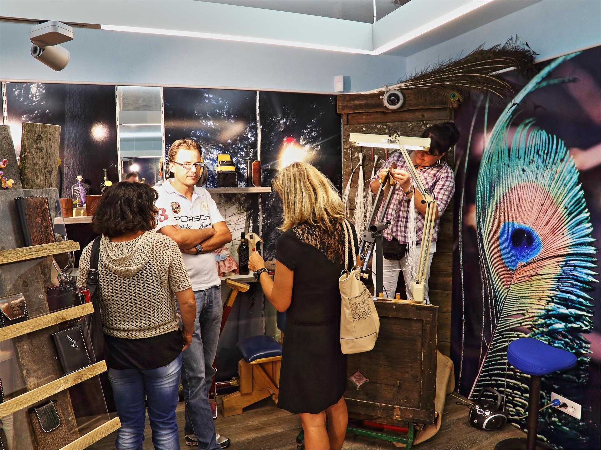 Money bags, belts, hand and shoulder bags, briefcases, key fobs, credit card cases, photo albums and much more awaits you in our shop in Sarentino Village. Quill embroidery, natural leaf and wood print turn our products into unique pieces: with dedication and creativity, we are happy to personalize your favorite pieces as you wish.