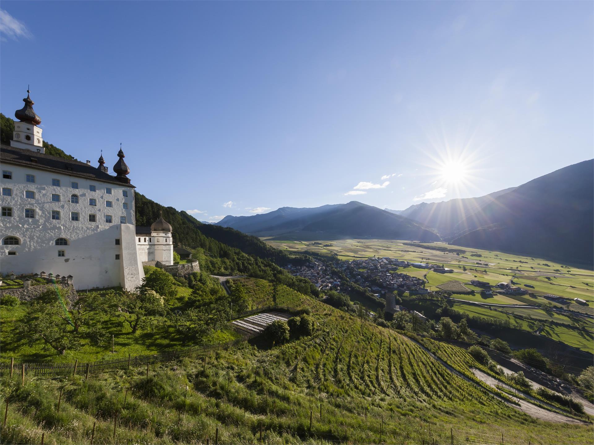 The car park and the bus stop at Marienberg Abbey are 200 meters from the monastery, directly on the road from Burgeis to Schlinig. The timetables of the busses can be found here