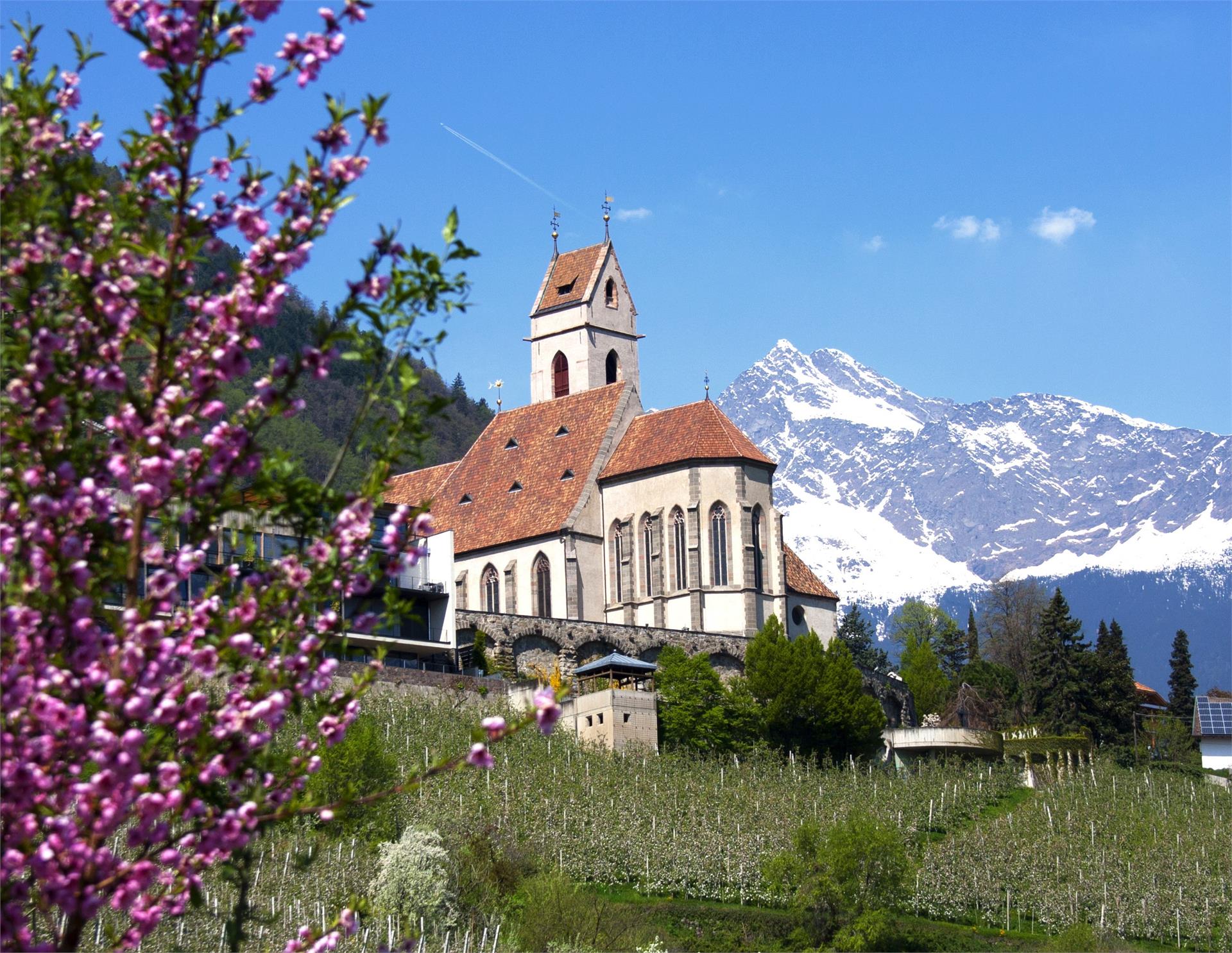 This church was first mentioned as long ago as 1166. It was rebuilt in 1251 and extended in around 1480, when the bell tower was built, of which after a fire only the lower saddle roof has been preserved. Today part of the old church serves as a chapel, and part as a vestry. The large bell, Annamaria, which weighs 3,163 kg and dates from 1847, is noteworthy. The new Pfarrkirche Maria Himmelfahrt parish church was consecrated in 1901. This neo Gothic place of worship with three naves was built to plans by the Viennese architect, Anton Weber. The main altar, the mosaic, side altars, wooden sculptures and four reliefs in the chancel are all worth seeing. 2002 saw the restoration of the pneumatic organ built by Josef Behmann in 1911, which is a protected monument. The sound of the church bells ringing even inspired Franz Liszt to compose “Ihr Glocken von Marling” (Bells of Marling). There is a replica of Marling parish church in Selsley, England.