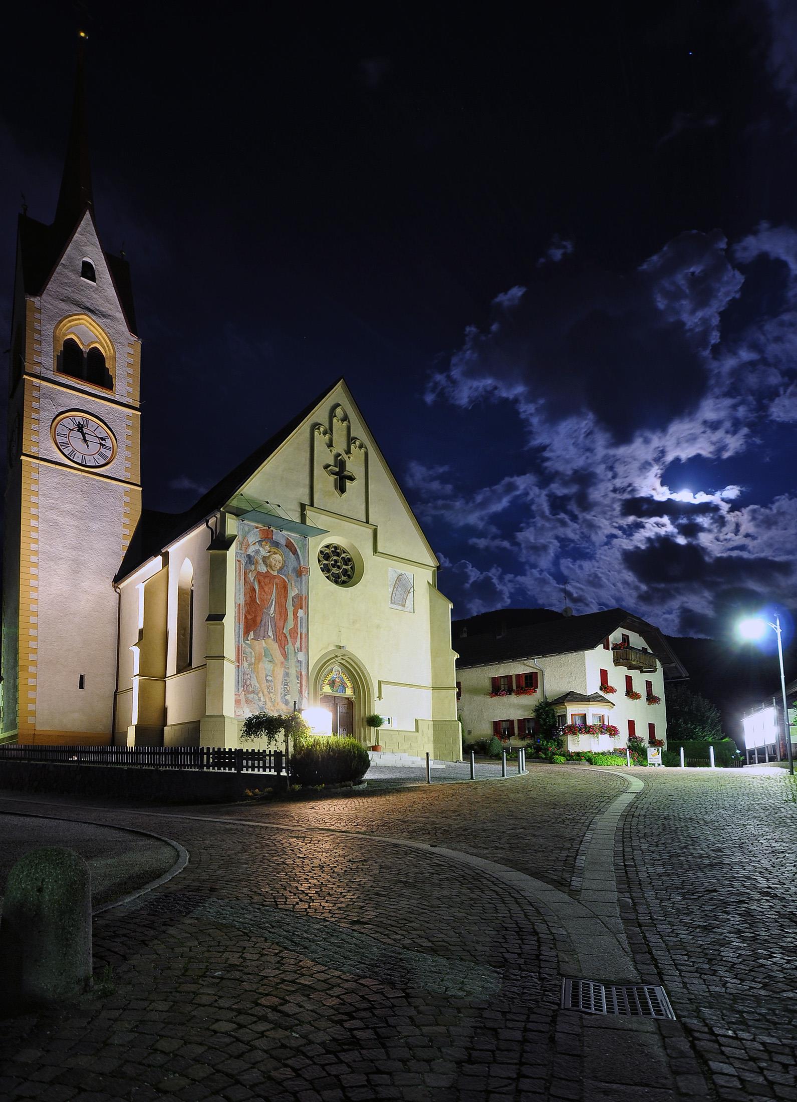 The late gothic church in Oberolang was consecrated by Bishop Albertin in 1472. Around 1650 the church was renovated changed into baroque style. The actual appearance of the church is neo-Gothic (about 1900). Especially at the inside the church underwent a consistent change. In 1899/1900 architect Roman Picher took care of the renovation. The stoned glass was made in a Tyrolean Glass factory in Innsbruck. The wood work was completed by Jakob Veider from Niederrasen.