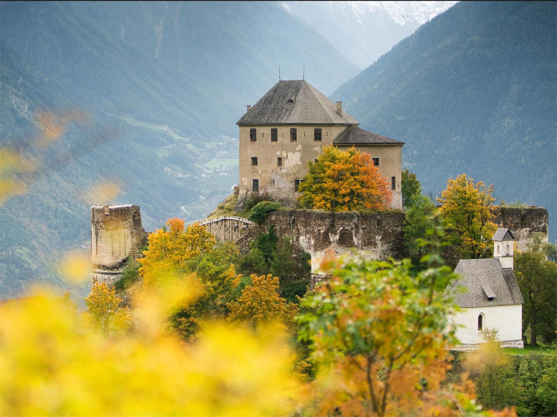 Dating from the 13th century, with gothic chapel from the 15th century. Was the property of the Lords of Mazia (choir chair and altar are located in the regional museum in Innsbruck). Later the castle became the property of the Counts of Annenberg. Cannot be viewed interior – private property.