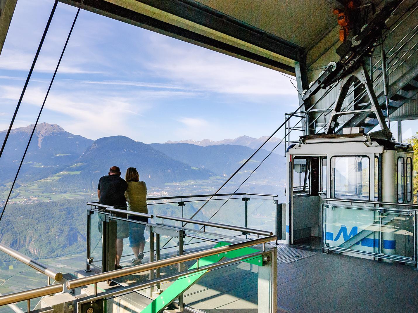 The ropeway, one of the smallest in South Tyrol, has a load bearing capacity of 12 persons per cabin. In just a few minutes it leads from Vilpian (260 m) in the Adige Valley to Schlaneid near Mölten (1.026 m) at Tschögglberg. Nestled between Bolzano and Meran, Mölten is an ideal starting point to explore the Sarntal Alps and to take wonderful walks and sunbathing hikes of different lengths and degrees of difficulty. Public parking directly at the valley station. Bus stop of line 201 Bozen-Meran directly in front of the valley station. Bus stop of line 201 Meran-Bozen approx. 200 m away. Bus stop of line 202 Citybus Terlan-Andrian-Nals-Vilpian directly in front of the valley station. The train station of the line Meran-Bozen and Bozen-Meran is about ten minutes away. The Tschöggelberg-Bus starts at 10.49 as well as at 12.49 (April-October) from the mountain station to the parking lot Schermoos (starting point for numerous hikes).