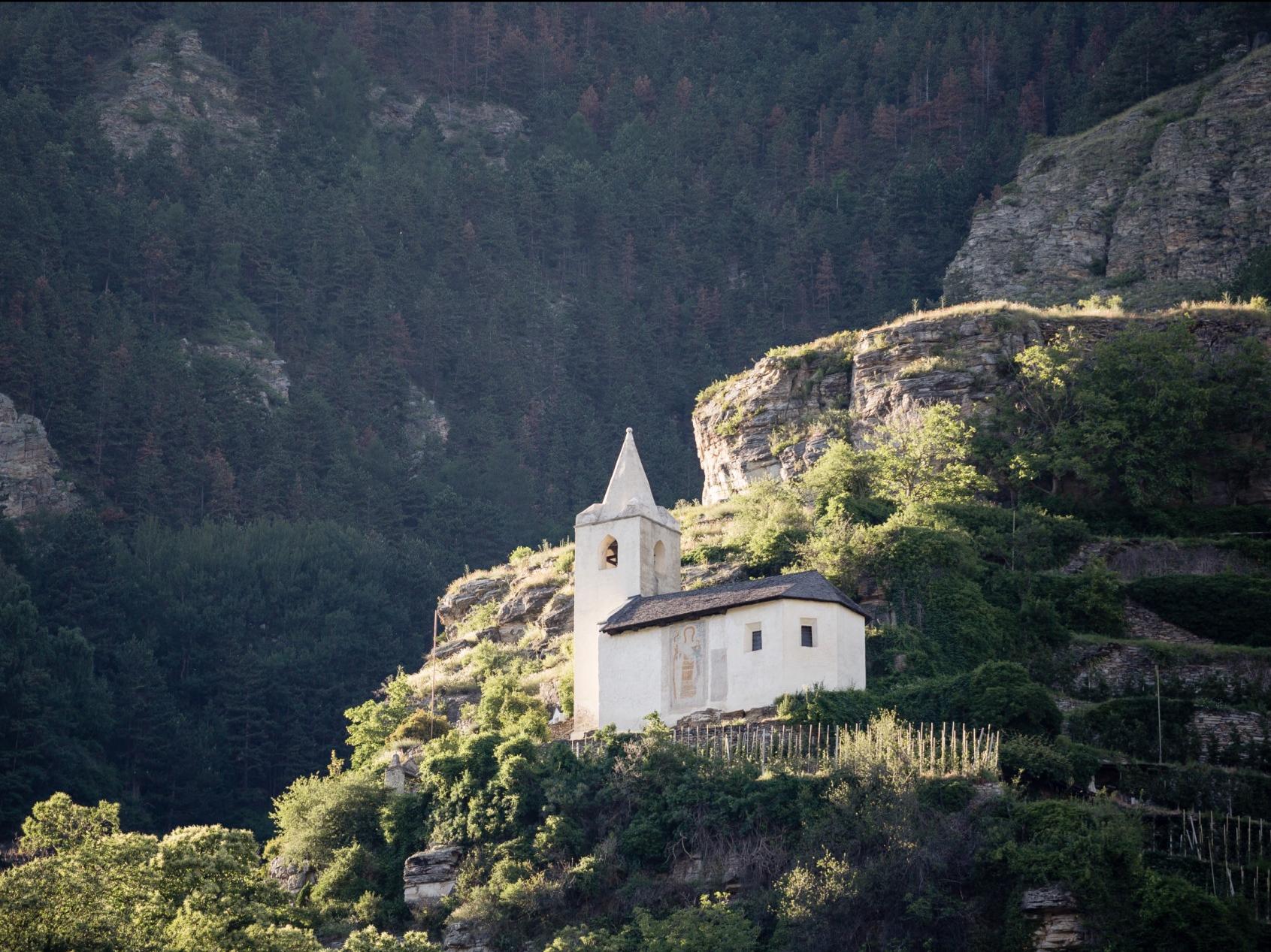 If you let your gaze wander over the barren slopes of the Sonnenberg mountain range in the Vinschgau valley in summertime, the white-chalk St. Ägidius’ church above Silandro/Schlanders will stand out. Embedded in the stone terraces of the Corzes/Kortsch steppe belt, the small Romanesque church resembles a Mediterranean rock church.