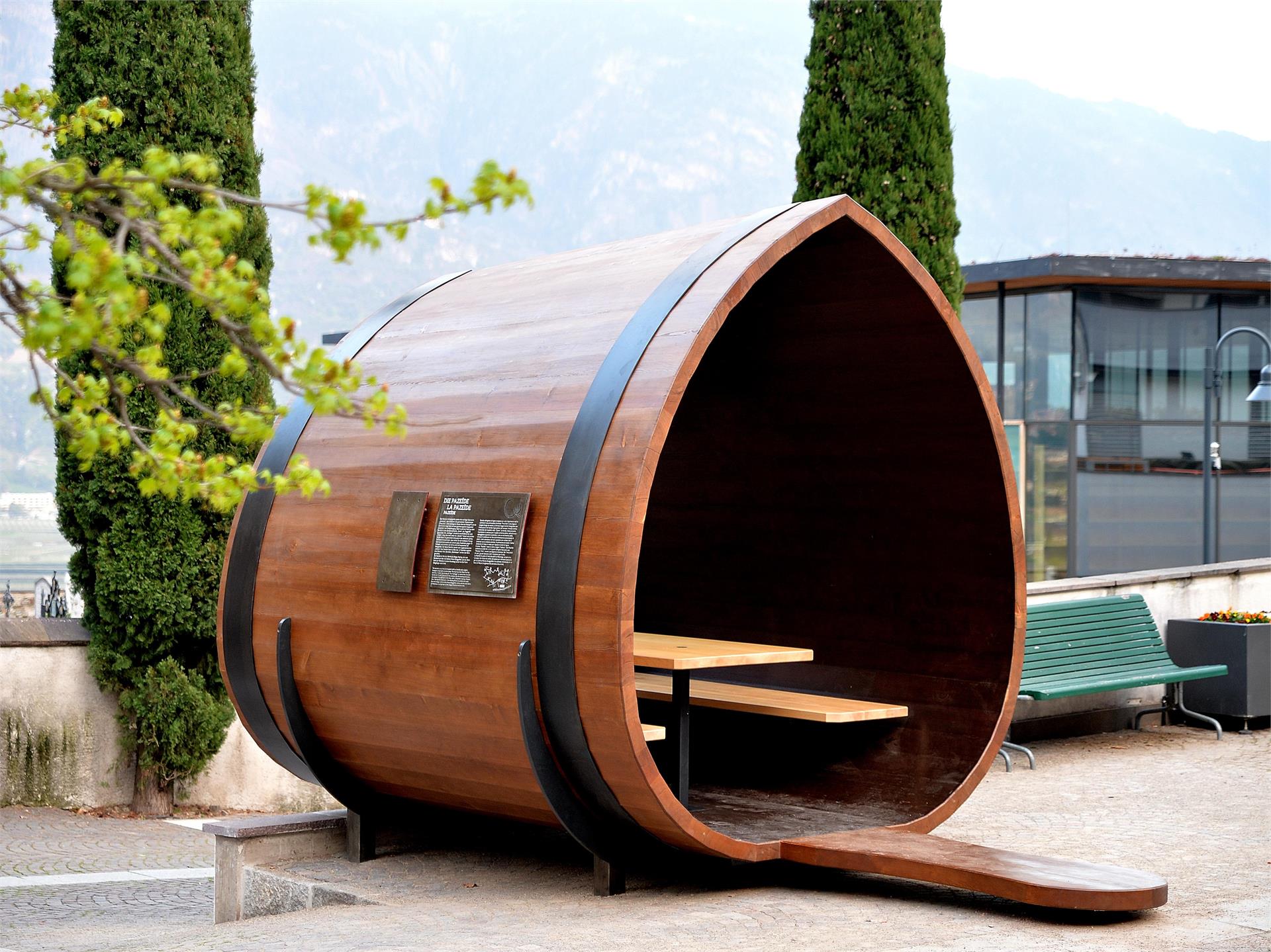 From the village centre, the Wine Culture Path leads along quiet village streets via the Meran Burggräfler wine co-operative and the numerous wine farms of Mitterterz in a loop back to the village (distance: 4 km). Along the way you can find information panels about the history and culture of wine, as well as giant-size items used in winegrowing: a Reber (vine knife), a Moster (pounder) and a Pazeide, an ancient wine and measuring vessel on the village square.
