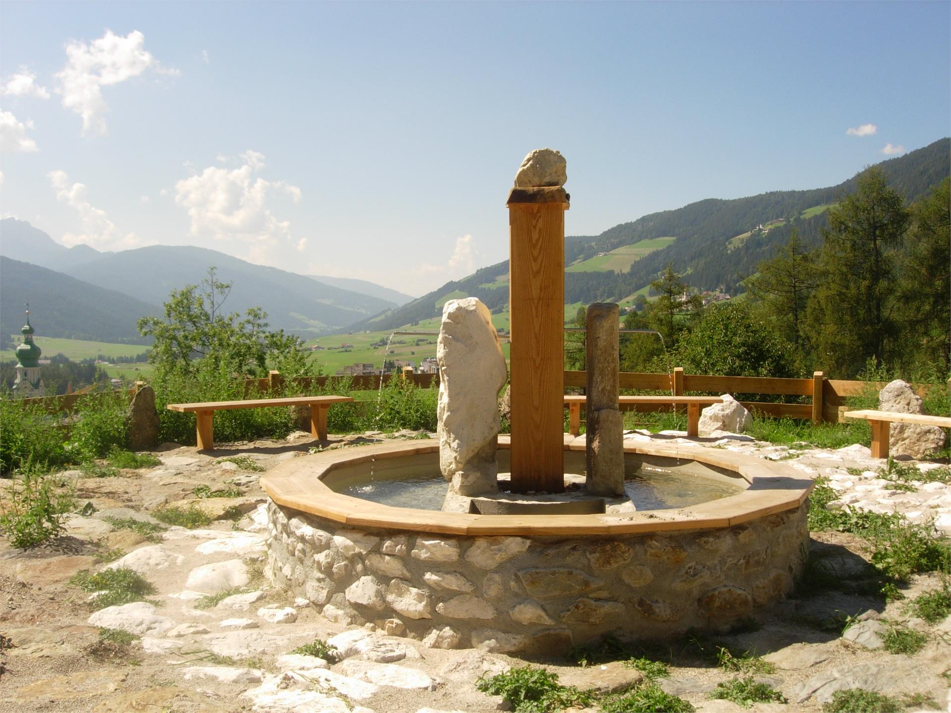 A drinking water well with an idyllic viewpoint at the edge of the town invites you to taste the two waters of Dobbiaco.
