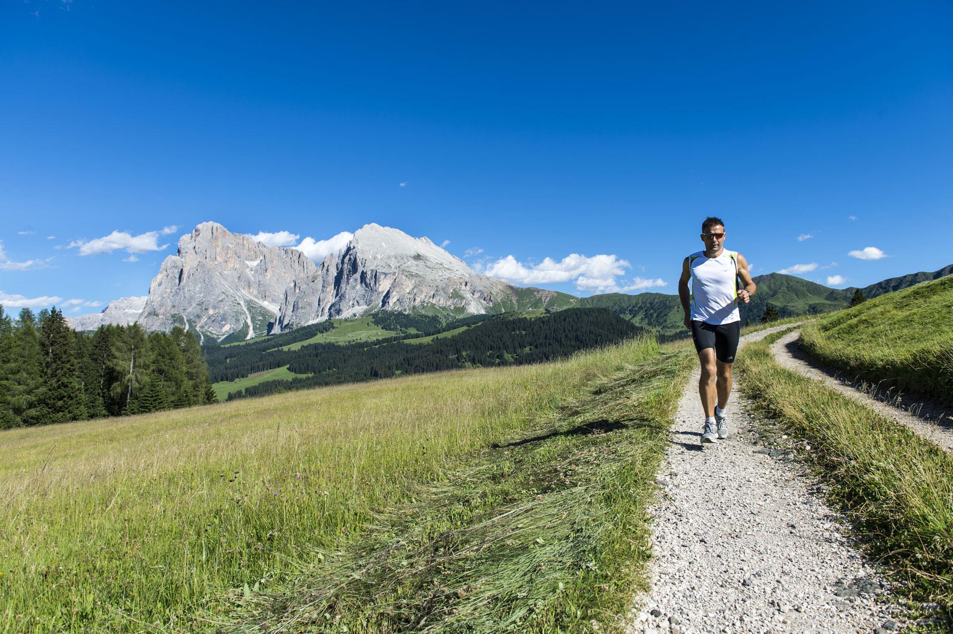 Die Laufrunde startet bei der Bergstation des Sessellifts Panorama und führt über Goldknopf, Almrosenhütte und Mahlknechthütte hinauf zur Dialer Kapelle. Weiter geht es ostwärts zur Stampfeter Schwaige, hinab Richtung Saltria und durch den Spiegelwald über die Lanziner Schwaige zurück zum Startpunkt.