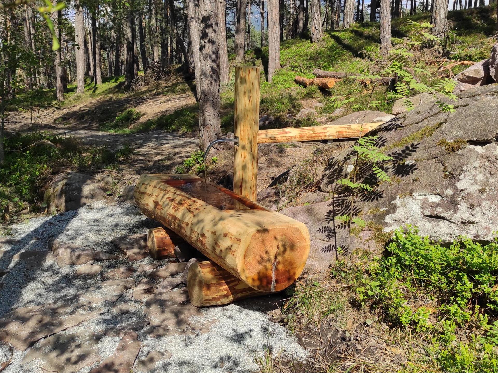 Dieser Trinkwasserbrunnen befindet sich im Laranzer Wald in Telfen, zwischen Kastelruth und Seis am Schlern. Vom Sportplatz Laranz folgen wir dem Wanderweg links in den Wald. Nach cirka 800 Metern, kurz vor dem Einstieg zum Pilzeweg, liegt der Brunnen auf der rechten Seite des Wanderweges.