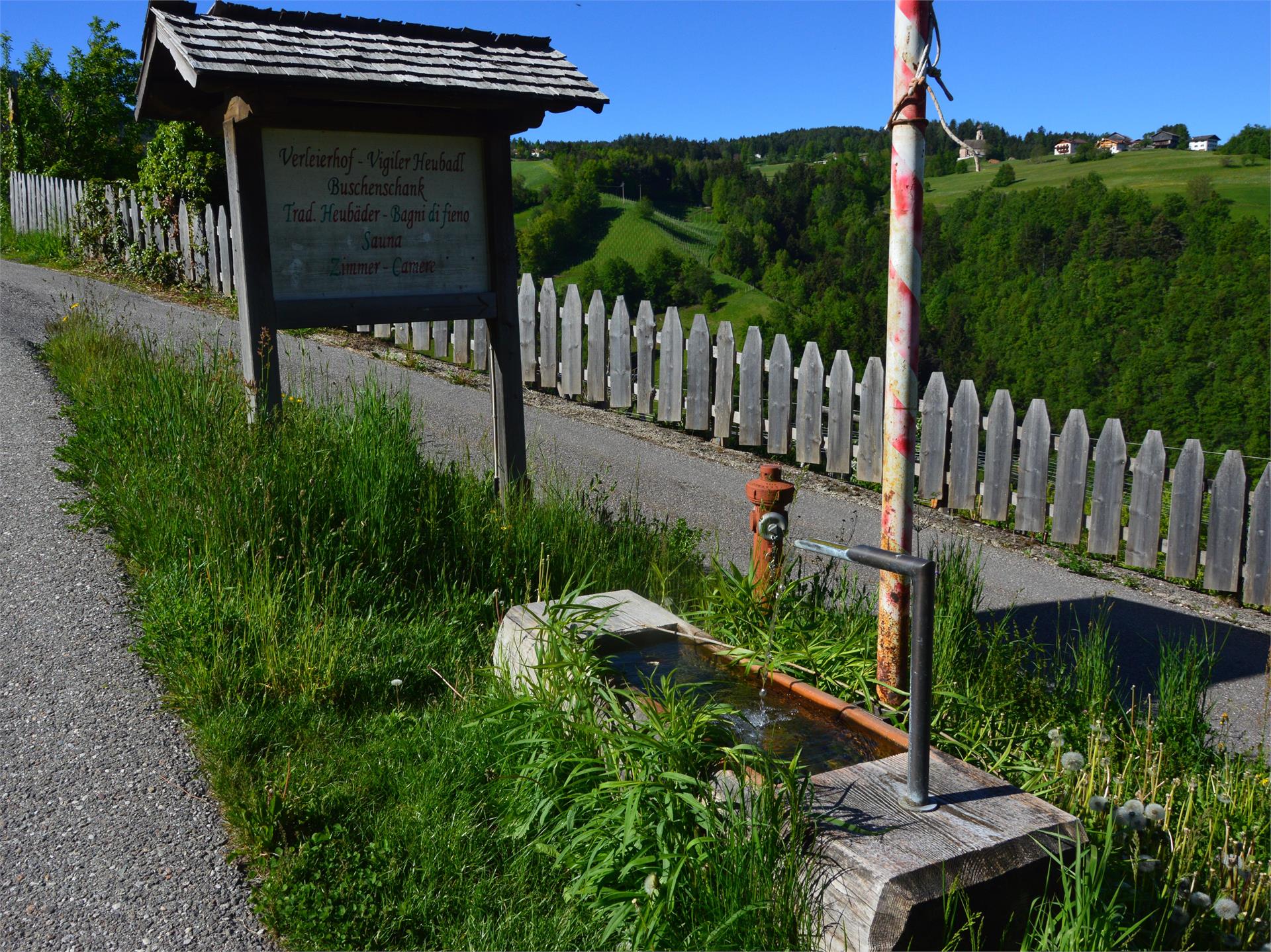 Dieser Trinkwasserbrunnen befindet sich am Verleierhof in Seis am Schlern. Vom Dorfzentrum Seis erreichen wir den Brunnen über den Wanderweg Nr. 7A Richtung St. Oswald.