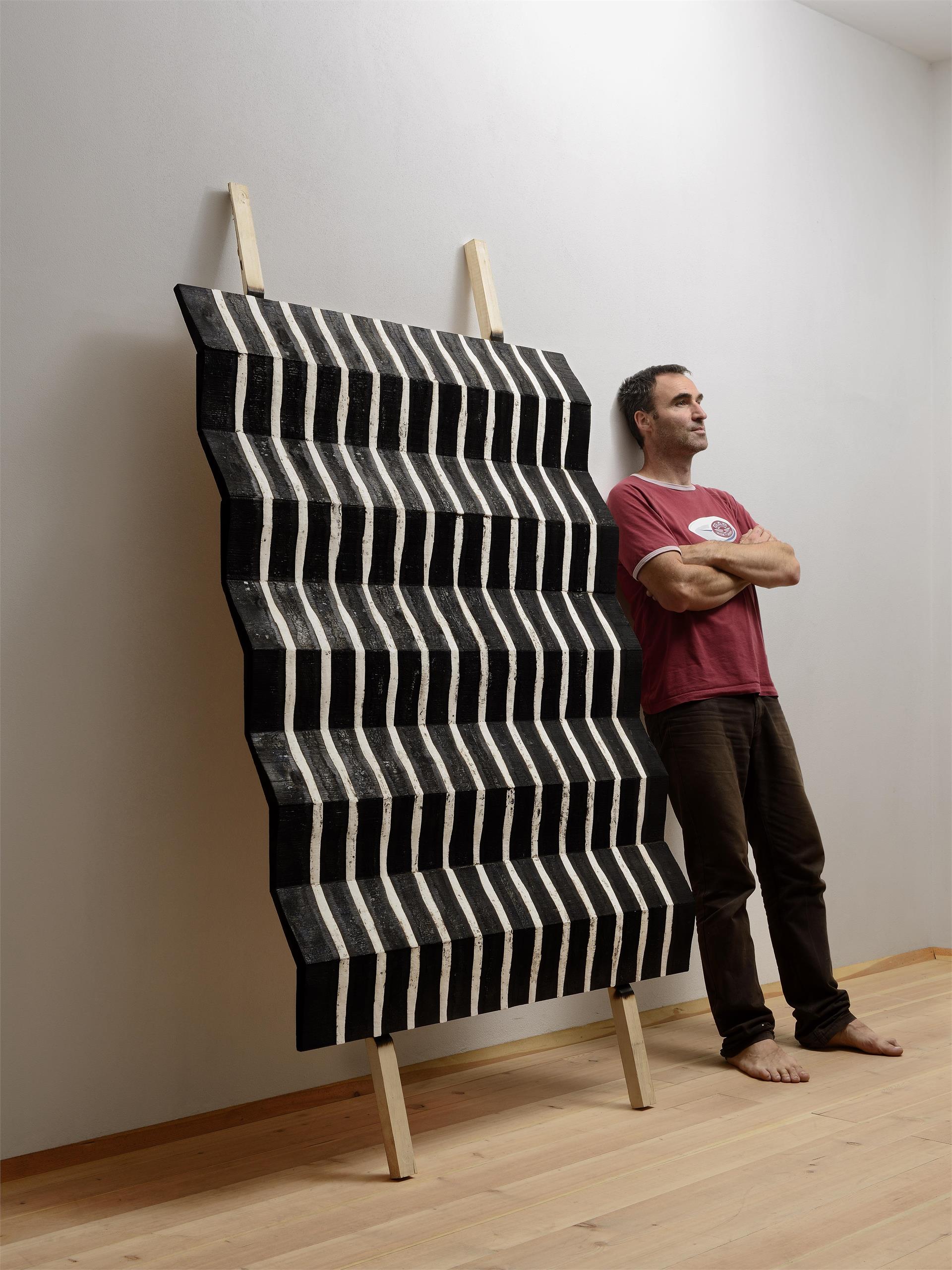 Rhythmus, Struktur und Anordnung in natürlichen Materialien wie Holz und Gips sind für Flavio Senoner unerlässlich, um seine Werke zu komponieren. Er studierte an der Kunstakademie in Florenz, Barnet Art and Design in London und Mailand. Er lebt und arbeitet in St. Ulrich, Italien.