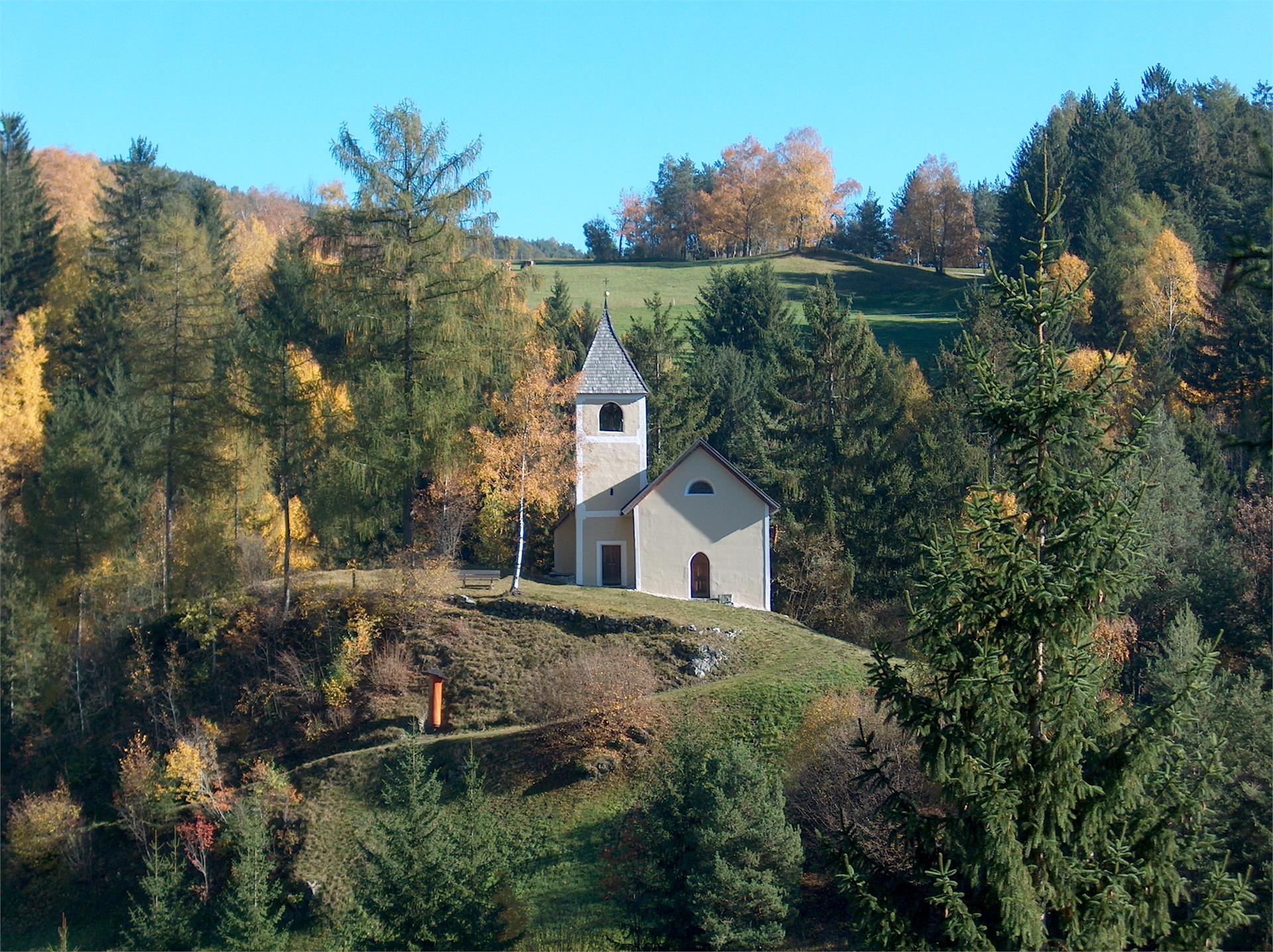 St. Zeno in Pein bei Terenten St. Zeno in Pein wurde im 12 oder 13 Jh. erbaut. Das Kirchlein liegt südwestlich der Pfarrkirche auf einem einsamen Hügel, zwischen zwei Schluchten. Die Kapelle zeigt im Tür- und Fensterraum den frühen romanischen Baustil. Der Turm wurde 1794/95 dazugebaut. Um 1770 wurden an der Kirche größere Bauarbeiten durchgeführt, möglicherweise wurde der Kirchenraum erst damals eingewölbt. Die Malereien im Kircheninnern stammen vom Barockmaler Johann Mitterwurzer (1745-1788). Der barocke Altaraufbau mit Maria-Hilf-Bild datieren in die zweite Hälfte des 18. Jh. Zu erwähnen ist auch die Glocke von 1539. Die letzte Restaurierung fand 1987/88 statt. Bitte wenden Sie sich an den Tourismusverein, wenn Sie das Kirchlein besichtigen möchten.